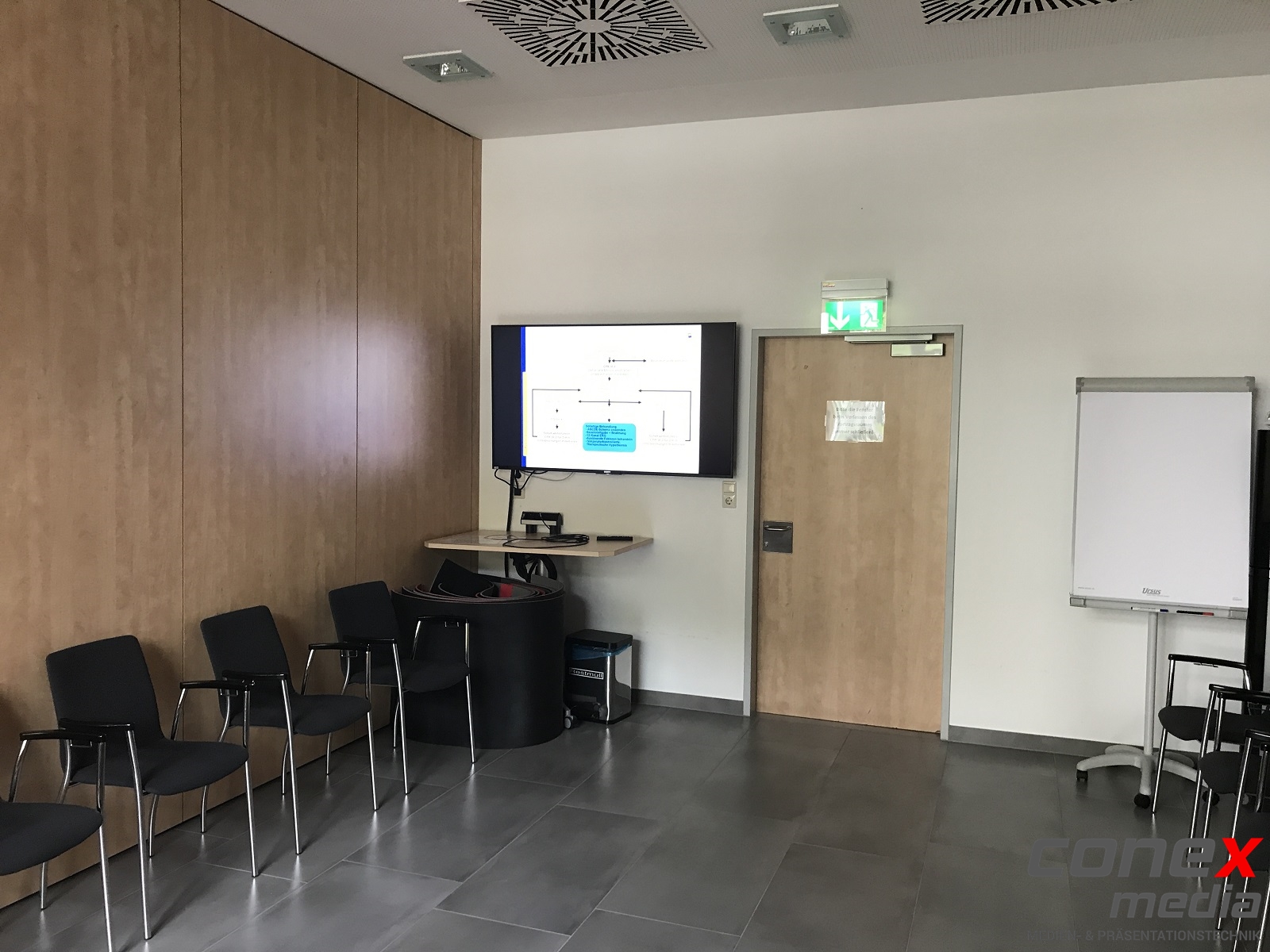 - Kann bei geschlossener Trennwand als Einzelraum und bei geöffneter Trennwand als Erweiterung zum Saal 1 genutzt werden.